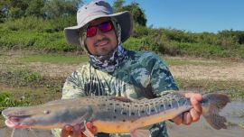 Mirá la increíble trucha que capturaron en el lago Mari Menuco